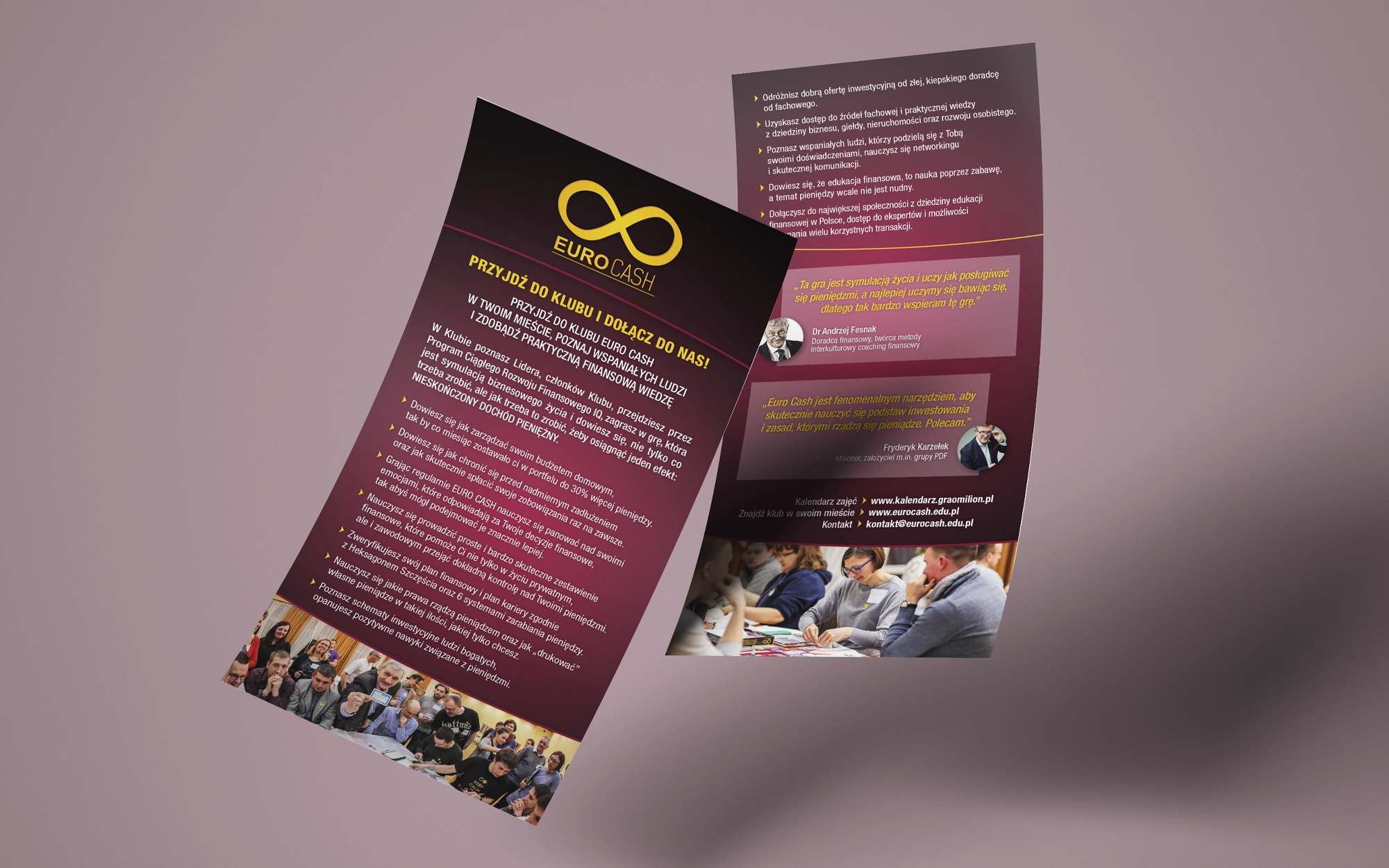 projekty materiałów do druku: ulotka DL, ulotka A5 oraz roll-up
